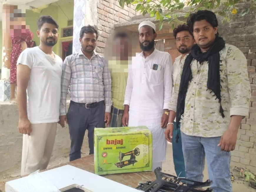 मौक़े पर पहुँच कर टीम द्वारा शिलाई मशीन देकर परेशानी हालात में मदद किया,,